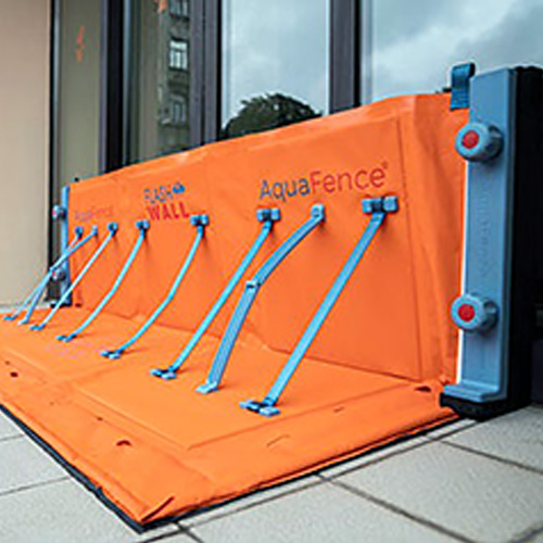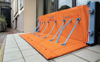 Aquafence社の の移動式洪水防止パネルは、欧米を中心に世界中の企業や公共施設に採用され、洪水被害の防止に役立っています。