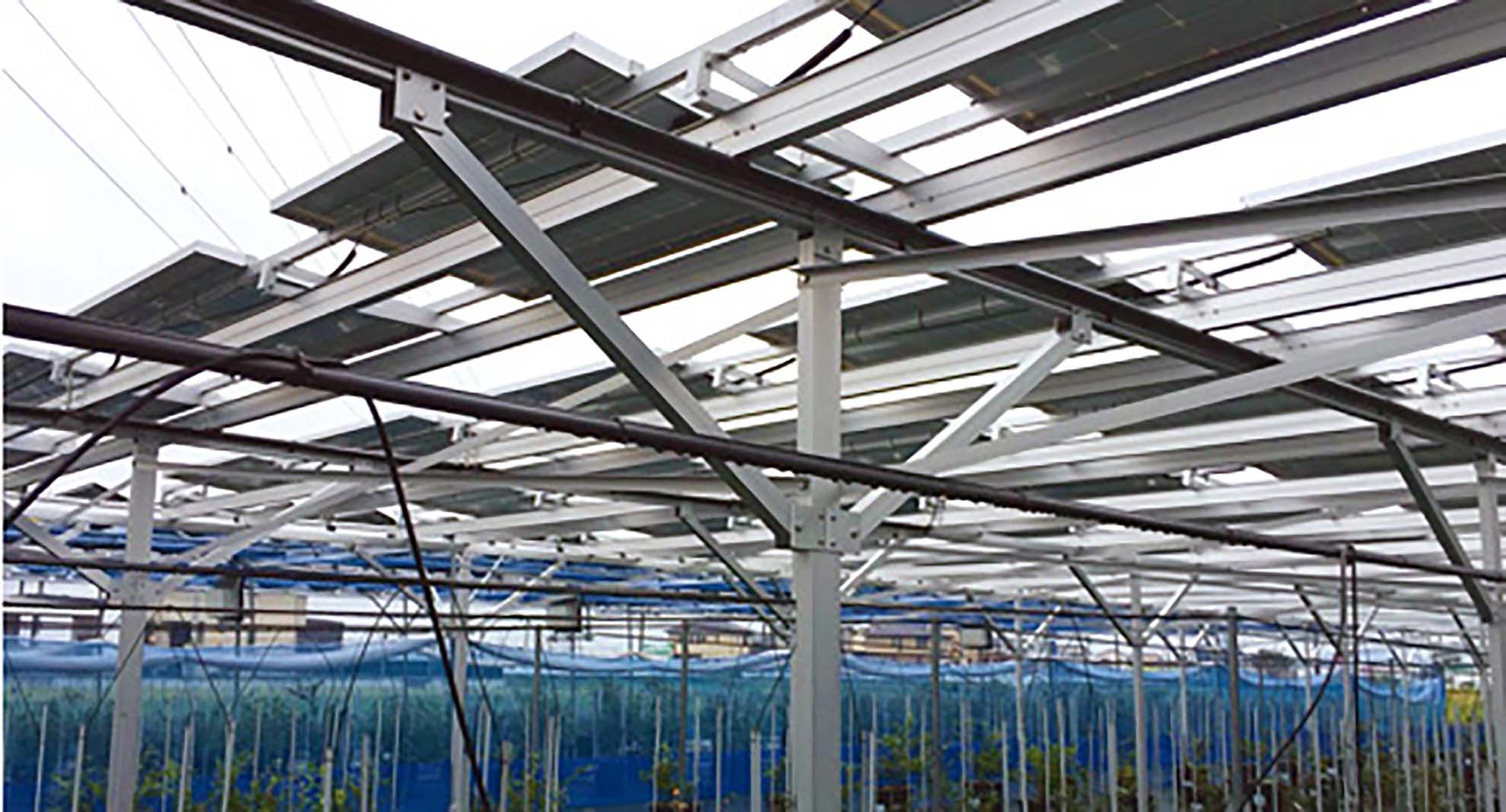 ソーラーシェアリングでは、植物の持つ光飽和点を考慮して、採光率を計算して、太陽電池パネルの配置を行います。