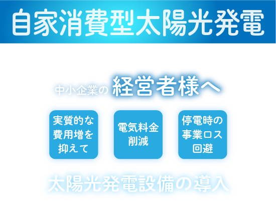 中小企業の自家消費型太陽光発電を導入に対しては、「中小企業経営強化税制」を適用すれば、「即時償却」などの優遇が受けられます。