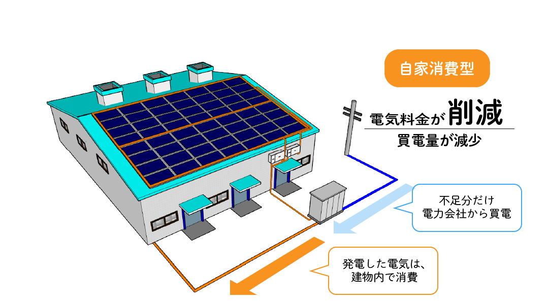 発電した電気を自家で使用することで。電力会社から買っていた電気利用料が減るため、電気料金の大幅削減が期待できます。